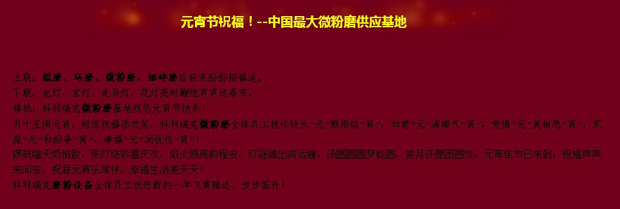 橫批:科利瑞克微粉磨基地祝您元宵節(jié)快樂!